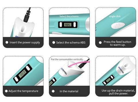 There is a speed controller on the 3D Pen for you to control the 3D Pen extrusion speed for smoother operation and intricate drawing. Adjustable temperature suits your different needs. It allows you to choose the appropriate melting point (temperature) according to the filament you are using. (PLA: 160℃-210℃, ABS: 210℃-235℃)
