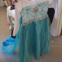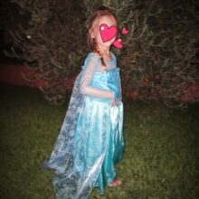 The child liked the dress, but the color is not as bright as in the photo. Gloves are big and not beautiful.