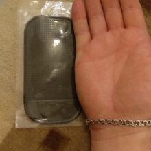 Anti-slip mat, clings to your dashboard or center console and clings to anything that’s placed on it. your cell phone, sunglasses or anything that’s placed on the Sticky Mat will not slide off.