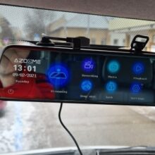 The AZDOME Mirror Dash Cam uses a 11.8″ IPS anti-glare full touch screen with 2.5D glass. It supports front and rear camera recording, allowing you to switch between front and rear view or monitor dual lenses at the same time in order to view more traffic information and achieve safer driving/reversing. The simple interface with its fast response time gives you the best experience.