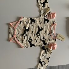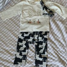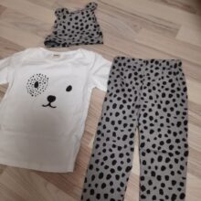 Body actually for height 70 cm, as is the care label, but is very wide. Pants are large baby sure 1,5 - 2 years. So with fail to this wear as a set. Headband very wide. Delivery super fast 2 weeks to Warsaw