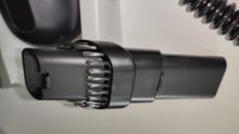 Vacuum cleaner small and powerful, do what you must. I will use in the car and it is very convenient. Comes with two spouts. The brush snaps on the front, while the spout pointed hooks on the back. Really very good!!! Super recommended!