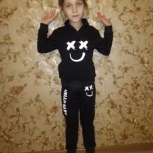 Today I got my win) a suit of excellent quality! The store is very responsive, I asked to send us size 90. The costume is not small, in the spring we will be excellent! If anyone has doubts about the quality, I can dispel them, the sweatshirt is more dense, A bright print, panties are slightly thinner, they also have a print on both pants. I recommend to everyone this seller