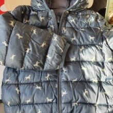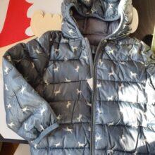 Super jacket! Well sewn. Vivid cool color. Size 5T will fit for 104/110. Light, wadded, will be perfect for spring. Recommend. Fast shipment.