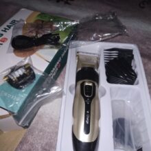 The goods came in full configuration. The box is not new, it's visible. The first sample of the haircut showed that the machine is medium cut. Maybe you need to adjust-I'm not a master.