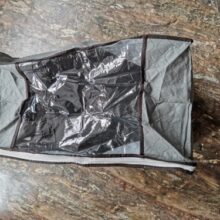 la bolsa llega plegada como en la foto, el tacto es de tela, tiene una ventana grande en la parte delantera para ver lo que hy dentro y no tiene partes duras, de manera que no es como una caja que queda con.la forma si no hay nada dentro, sino que deberia estar llena para que se quede con la forma rentangular de la foto, eso te da flexibilidad si tienes quemeterla en una estantería más estrecha o bajo el canapé. Además tiene 2 cremalleras y en principio corren bien, y luego 2 asas a los lados. Ha llegado en unos 15 días. Veremos si es duradera!