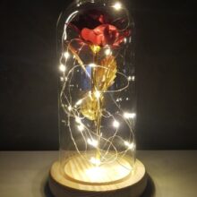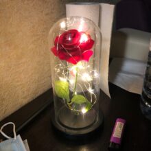 Material:Glass dome, Pine wooden bottom, Flannelette Rose