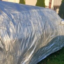 Afigenic cheholchik, quality is satisfied. With such a cover and a garage is not needed, and the shower is not terrible