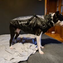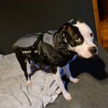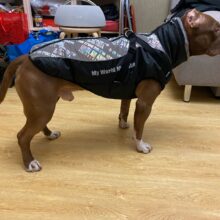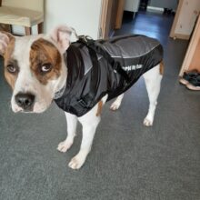I thought I wasn't gonna find a coat your size because it's pretty big but this one's great even A little loose, better to make him more comfortable and he can play with it. The quality is very good and the zipper comes with a protective plastic not to catch the movies and so it won't pass the water if it rained either. Super enchanted with the purchase, she's not at the moment, she's never had a coat and she's a little scared jajaja