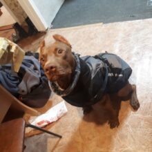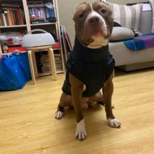 Ordered a Pitbull for 1 Year 1 Month... chutot bolshevata it was necessary to take 5 x l... Quickly arrived in 13 days... And the quality is excellent... I advise you to take