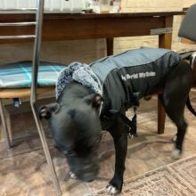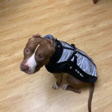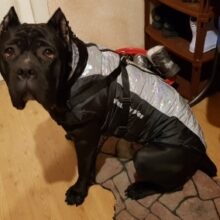 Description exact, Cane Corso 1 year old male, weight 60 kg suit Butt, chose the largest size. To those very much, I'm afraid soon we will not zip it.