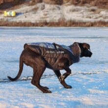 Jacket fire. Expected the worst. Expectations exceeded everything possible. A cool collar that from bites during the game does not ski and the quality of fur is awesome. The quality of the material of the jacket itself is also super, waterproof, fasteners inside the jacket, a harness outside. The puppy grows and will definitely take more. On Doberman (male) 7 months took 5XL