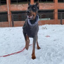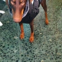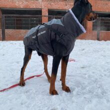 Och quickly came! On Doberman 8 Months 6 x L-sat perfectly, and a little on the growth! Cloth is dense, good. Before that, they took a red (in the photo) do not advise!-at the seams cracks