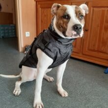 Boxer 29 kg. Wzięłam 4XL.. Mogłam wziąść size bigger. Seller writes about possible error for 2cm dimensions, but is an error rather down, than up. I have a feeling, the holes on the front paws are small and the odgniata (on white dog seen redness front lug) but can be this caused also this, that the chest bolero is obci sła. General Super porzadna clothing. I am under wraże niem. Recommend.. PS. Czekałam 2 weeks for shipment