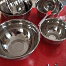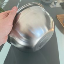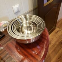 Very happy with these. I bought the two largest sizes and I have used one to make a large batch of bread (1200gr flour). The bowl is light, which is handy when working with the dough. I washed the bowl with steel wool and I couldn’t notice undesirable scratches. The steel is thin so I expect the bowl will get dents with heavy usage, but that’s just normal wear and tear.