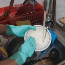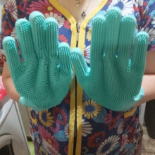 Good gloves, but after testing them when washing dishes, I concluded for myself, they are uncomfortable. When you wash the dishes sometimes you want to wash with your finger in some places it is not convenient, but on the gloves on the bend of the finger there is no bristles, it does not allow you to wash well.