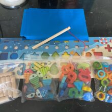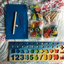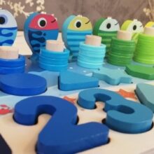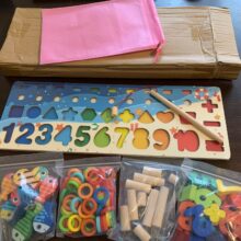 A wonderful set, a child of 3 years old really like it! Almost all the details are made of wood, they do not leave burrs, they are painted very qualitatively, there is no foreign smell. Only the rings are plastic and slightly different in color from the rest of the parts. The size is just for children's fingers. In the kit there are bags and an excellent bag for details.