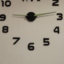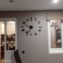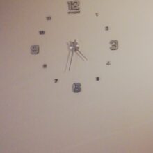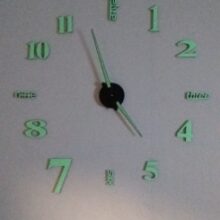 Cool clock. Glue well. It's been an hour. The mechanism glued on another two-sided Scotch, which is very weak in the kit, did not risk. The diameter made 50 cm, so that the minute arrow to the digit delivered, the children so easier to determine the time. With the store did not communicate, but he quickly sent and the order received days after 8 in Mo. So recommend!