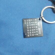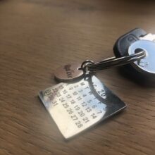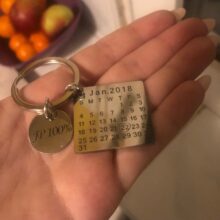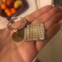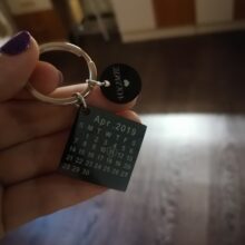 This keychain is a stainless steel disc charm. The Purpose of the calendar is to engrave a special day or month that marked a beautiful moment in your heart that stays a souvenir. It is a wonderful way to remember the special date of an anniversary, birthday, wedding, the day you got your dog, the month you met your boyfriend or girlfriend, even a first date or a kiss.