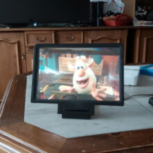 This magnifier screen is super good for the people like me to watch shows (cooking shows) or videos while doing cooking or cleaning the dishes. I have an iPad but it is always busy with my kids. The design is super cool,the view is clear and allows me to watch anything from distance.
