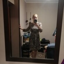 Dress of good quality. Novosibirsk reached 8 days. On the parameters 92-68-96 took M, it was possible s. Very freely in the waist, although there is an elastic band, only with a belt to wear. Height 153.