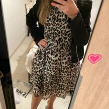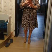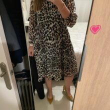 Dresses are very nice. Leopard's got something looser left. But they both look pretty. What I don't like is that the sleeve is transparent so it's not very warm for winter. I have below the knee. They have both lining so you won't see anything. I send them very quickly by the store. They look great for elegant d dress for the office or some event. I chose the L and shoulders this great just like sleeves. My measurements are 175 cm height. 94-74-115