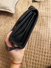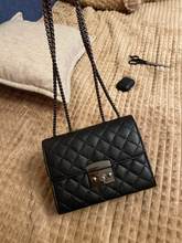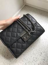 I was super excited when purchased this bag! It's finally arrived and I can't be happier. The bag aligned photos on the site and description. The chain feels heavy and made well, also adjustable. The false leather also doesn't feel cheap. Well build. It came with a little scratch on the lock, but it's barely visible. Although, the price is great!