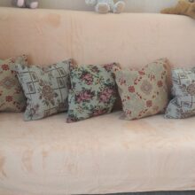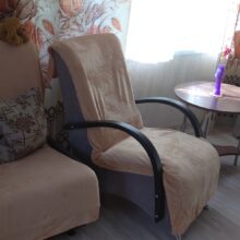 On sofa 200*230, on chairs 100*140, color beige. Delivery fast