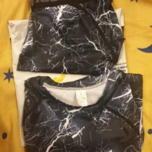 Everything is quite high quality, the threads do not stick out, the seams are neat, on my weight 105 kg and 181 cm height took 3XL, the shirt perfectly fit the pants a little tugovato do. Recommend. For such a price in Russia you will not find anything, but for the Hall the most set. And the dirt from the floor can not be picked up on the sweaty body and less to get dirty sport-the shells will sweat the body. Thank you.