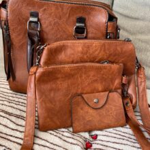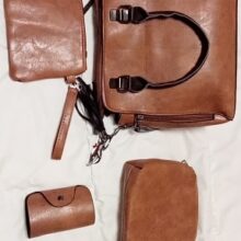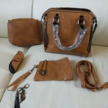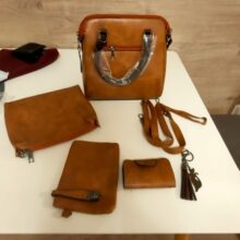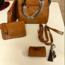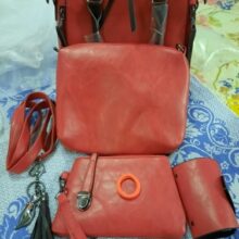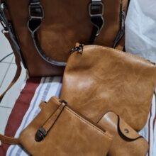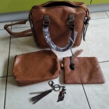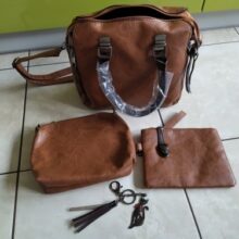 As bolsas são bonitas e de boa qualidade. Na bolsa maior faltou acabamento, pois veio com algumas linhas soltas e o detalhe quebrado. Das 3 outras menores nada a reclamar. Gostei do couro sintético, a cor é igual o da foto e são lindas.