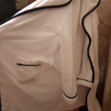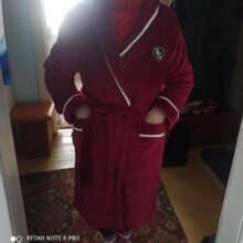 Shipping fast. Packed perfectly. The robe took on a size of 48-50 height 164. The length is below the knee by 7 cm. The smell of the robe looks good. it was possible to size smaller. The shoulders are lowered and therefore the sleeves are long. But the reviews could be short and with a small smell. Inside there are ribbons for tying. the material is soft and pleasant to the body. the edging on the model is sewn over. And here it is in the edge of the collar. Evaluation to store 5.