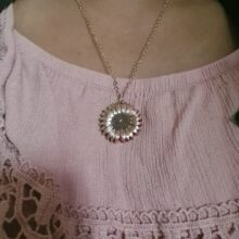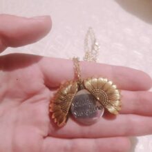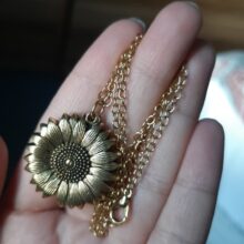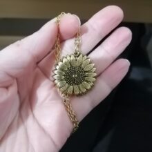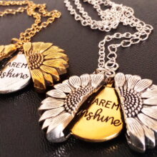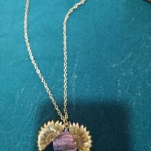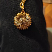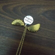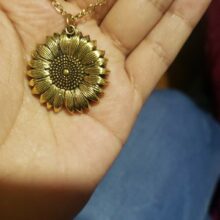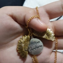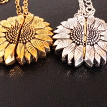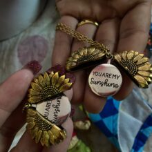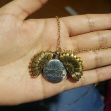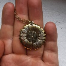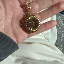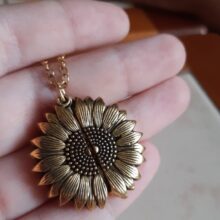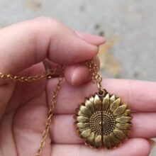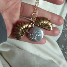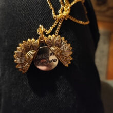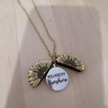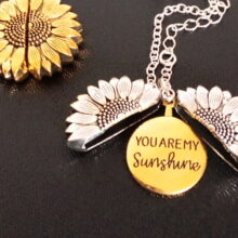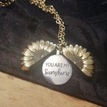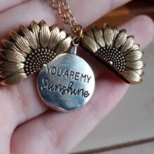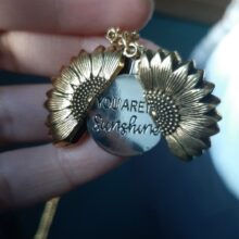 The sunflower locket opens up to reveal the loving words “You Are My Sunshine”